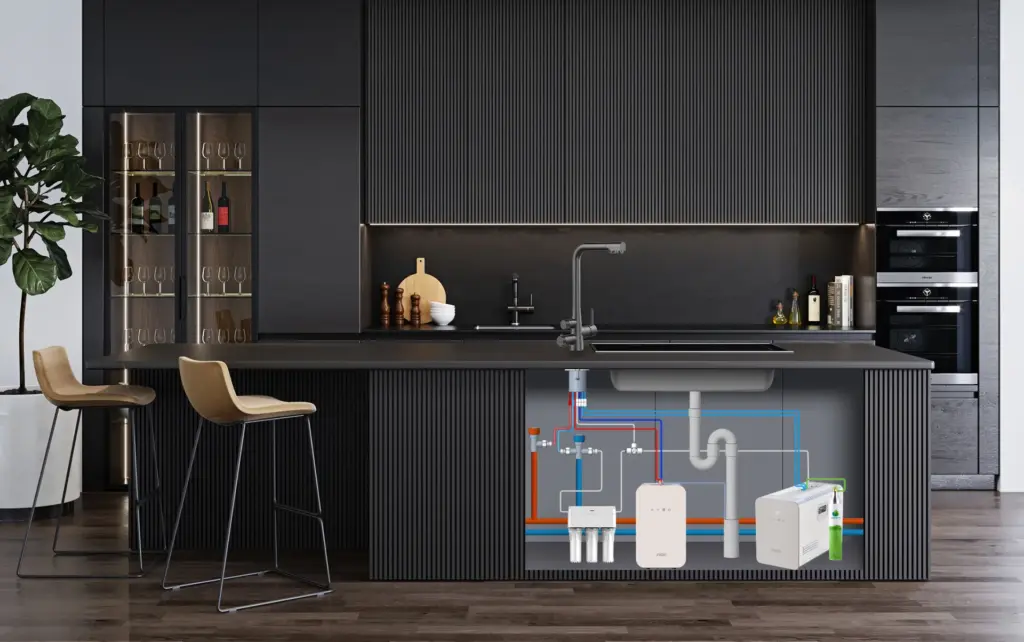 • Space-Saving & Sleek Design: The core technology is housed in a compact, under-sink unit. Only a sophisticated, designer tap remains on your counter, complementing any kitchen aesthetic.